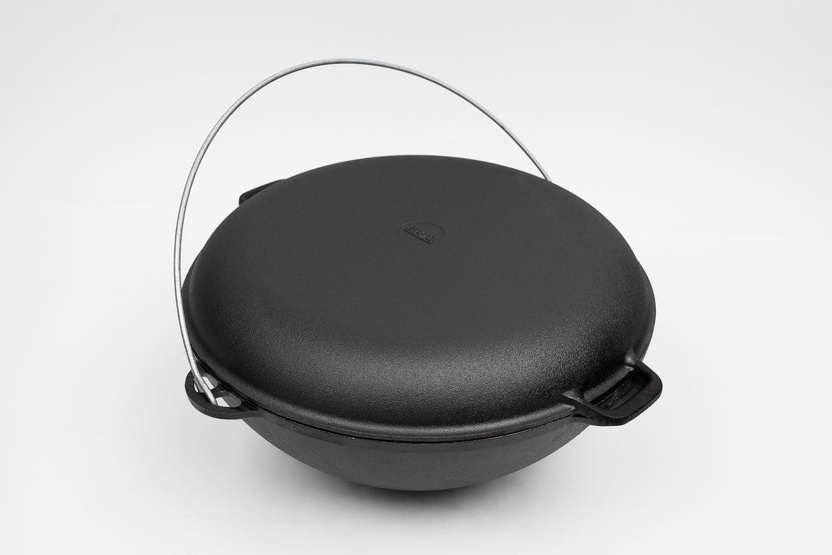 Казан 12л ТМ Брізол,чавунний татарський з кришкою-сковородою і дужкою