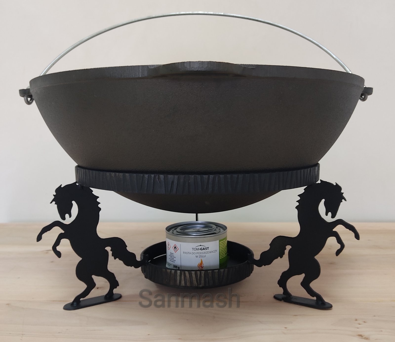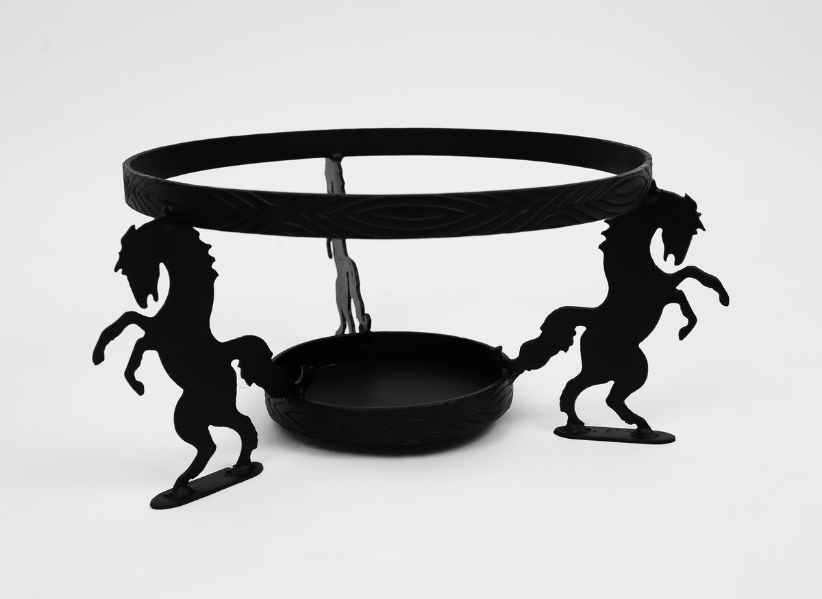 Буцифал - підставка: естетична, зручна, легка, надійна у використанні. Має сплошне дно, куди ставимо гель-марміт для підігріву страви.. Приготовлена страва у казані зберігається впродовж тривало часу гаряча, тому зручно викристовувати дану підставку під час довгих розмов з рідними, друзями, колегами...