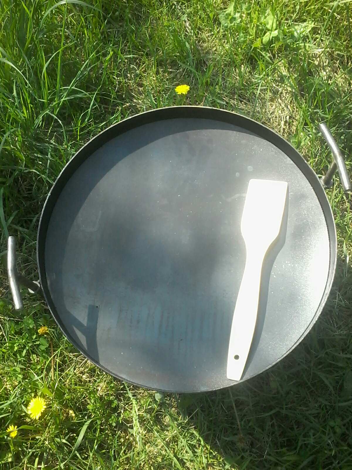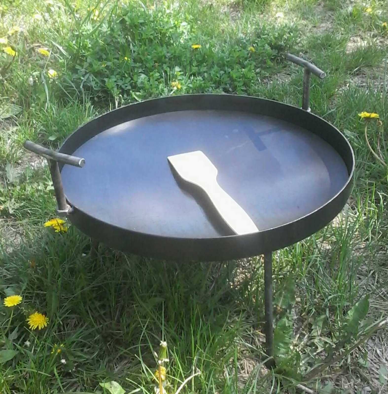Сковорідка з диска борони для приготування страв на відкритому вогні, на природі. На диску можна приготувати смачнющі страви - це жарена картопля з грибами, м'ясом та овочами, яєшня з сальцем та сосисками, плов, рис з реберцями та багато іншого.