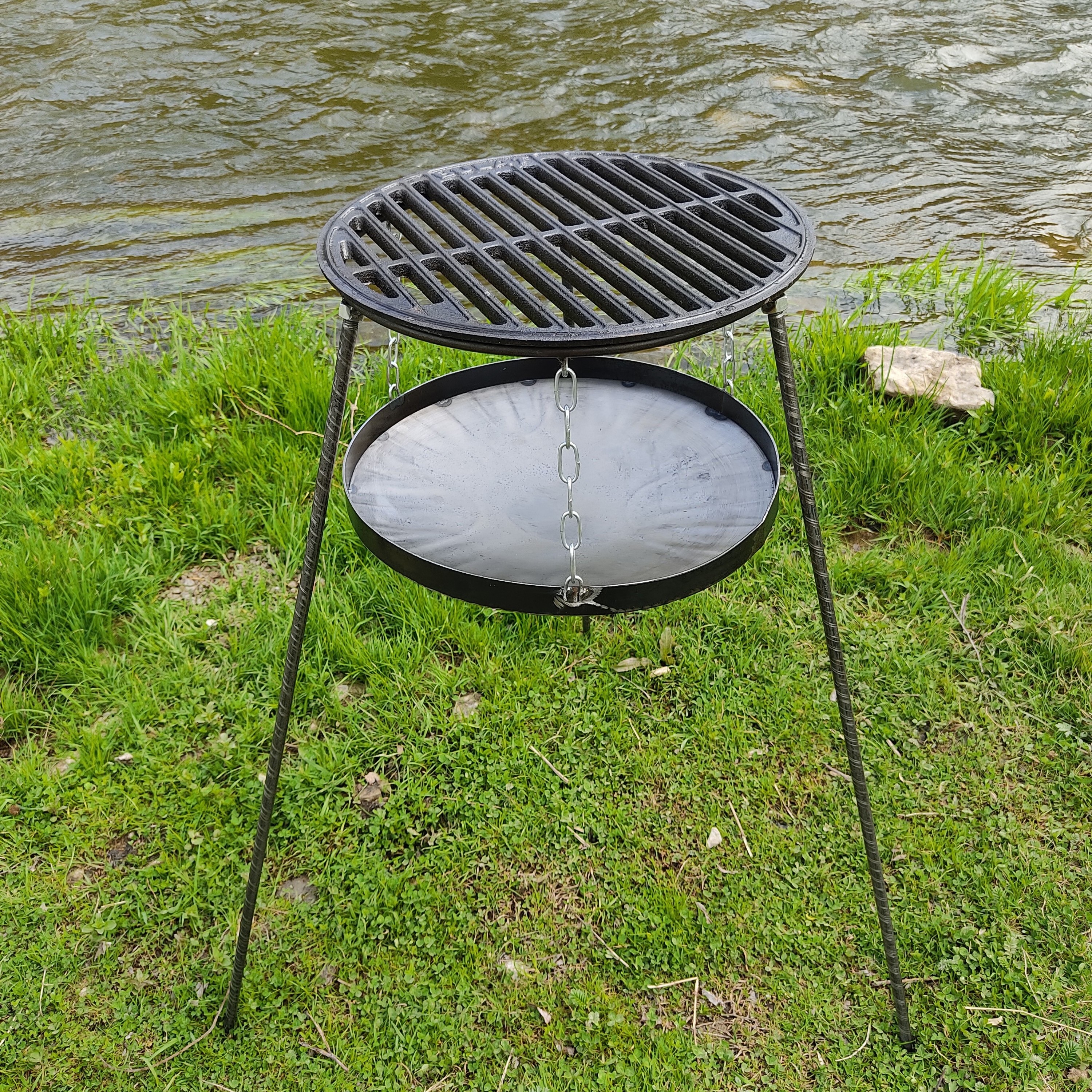 Садж-підставка під сковороду із диска борони, на високих розбірних ніжках,з платформою для дров