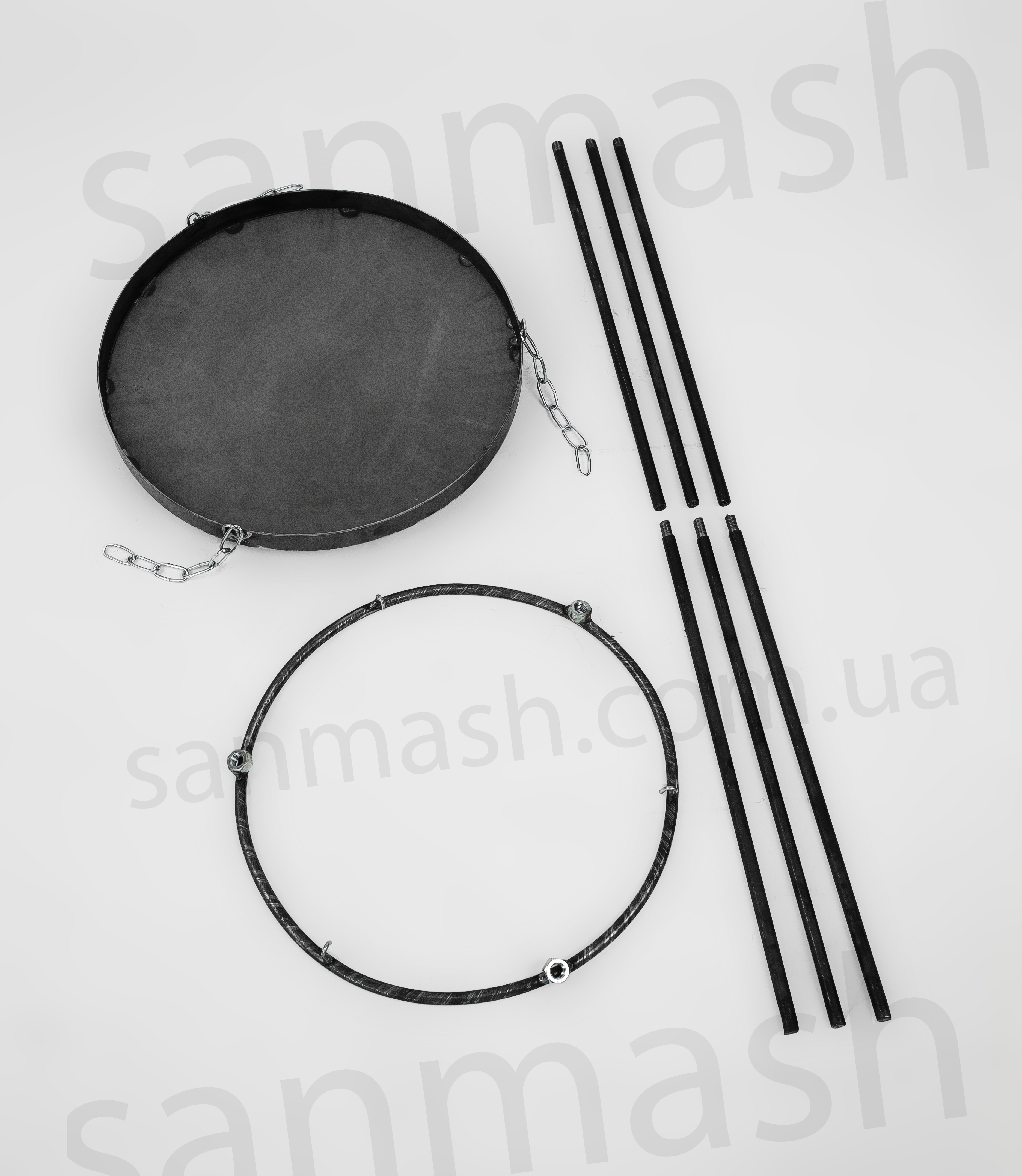 Садж-підставка для сковороди із диска борони, з платформою для дров, на високих розбірних ніжках, щою було зручно помістити в чохол: