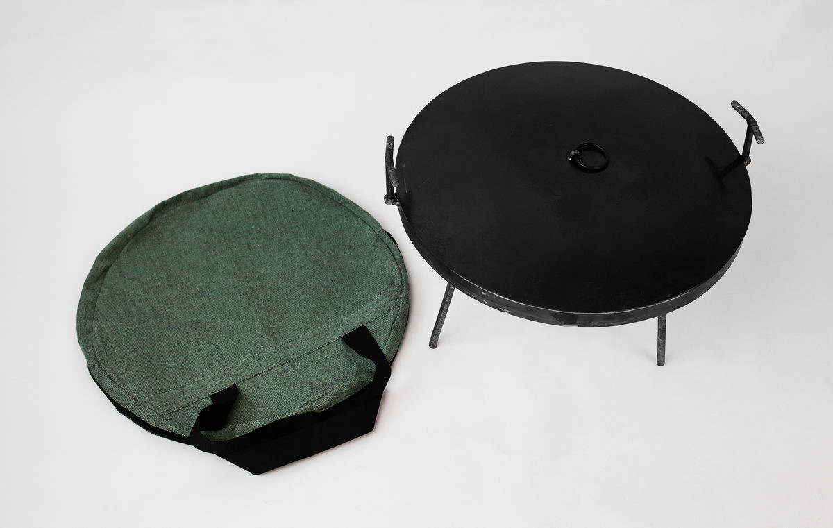 Сковорода із диска 4 мм, діаметром –40 см у комплекті із кришкою та чохлом, яка ідеально підходить для сім’ї, або компанії до 8 чоловік.